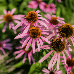 Narrow-leaved Coneflower, like its broad-leaved cousin, is native to the Midwestern United States from Minnesota to Texas. An 1805 shipment of plants sent to Jefferson by the Lewis & Clark Expedition included this species, called 'Mad Dog Plant'. The Native Indians prized it as a remedy for rattlesnake and mad dog bites. The Latin name, echinos, meaning hedgehog, refers to the bristly cone of disk florets in the center of the large composite flower. This Coneflower has many landscape benefits: the flowers attract butterflies, birds consume the seeds, and it is drought- and deer-tolerant.