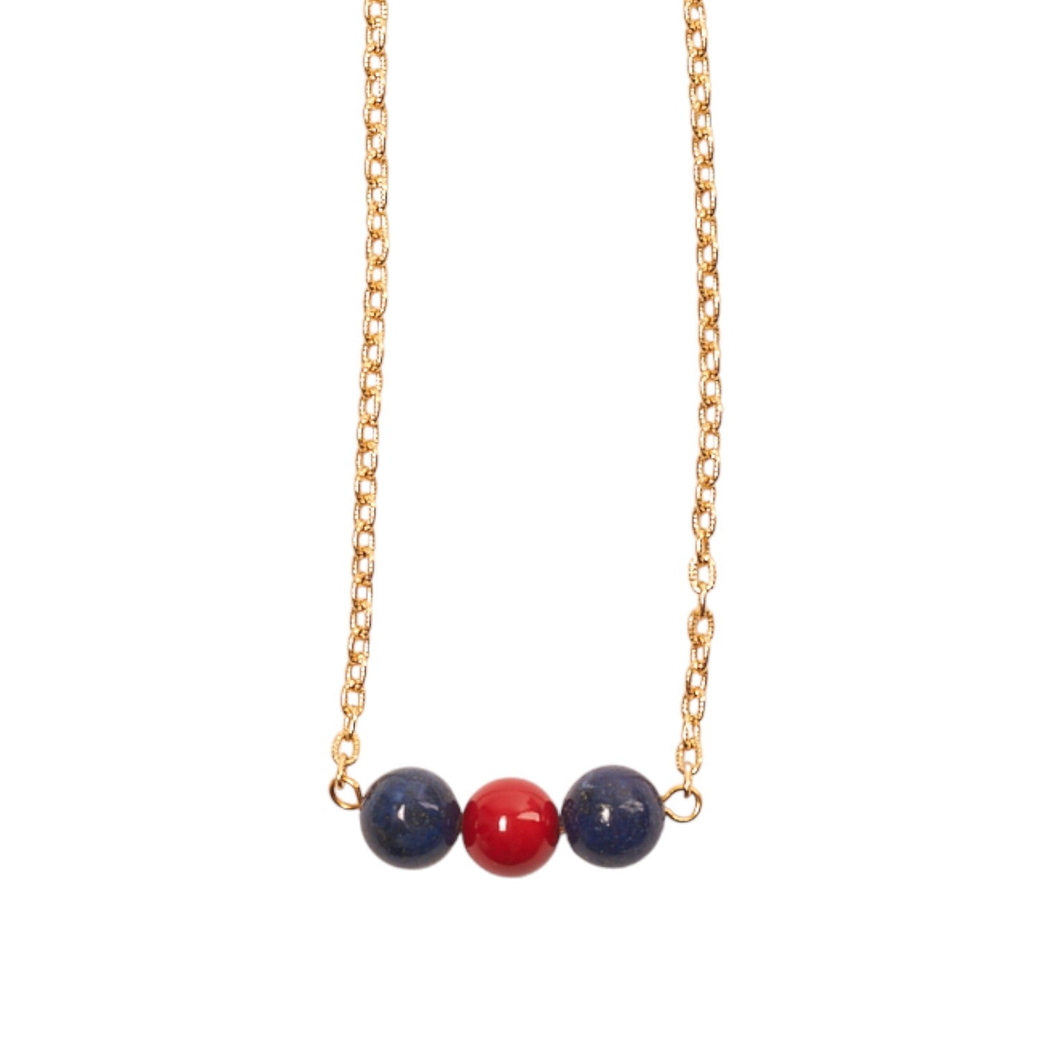 24 Kt gold plated chain and lapis and red coral beads, 10 mm