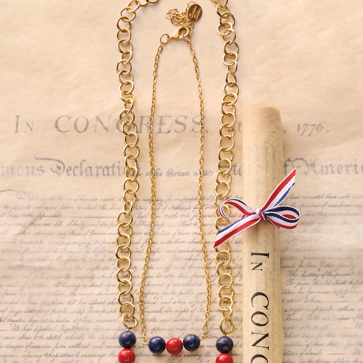 Handcrafted from blue lapis and red coral, and finished with triple-plated 24KT gold, our bead necklace is rich in color and designed for versatile, everyday wear. 16"l with 3" extender. Made in the U.S.A.