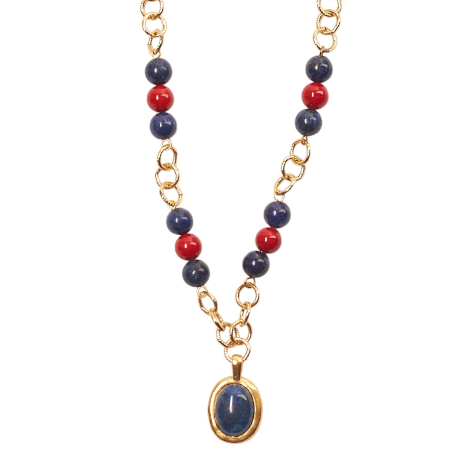 Handcrafted from blue lapis and red coral, and finished with triple-plated 24KT gold, our pendant necklace is rich in color and designed for versatile, everyday wear. Made in the U.S.A. 30"l.