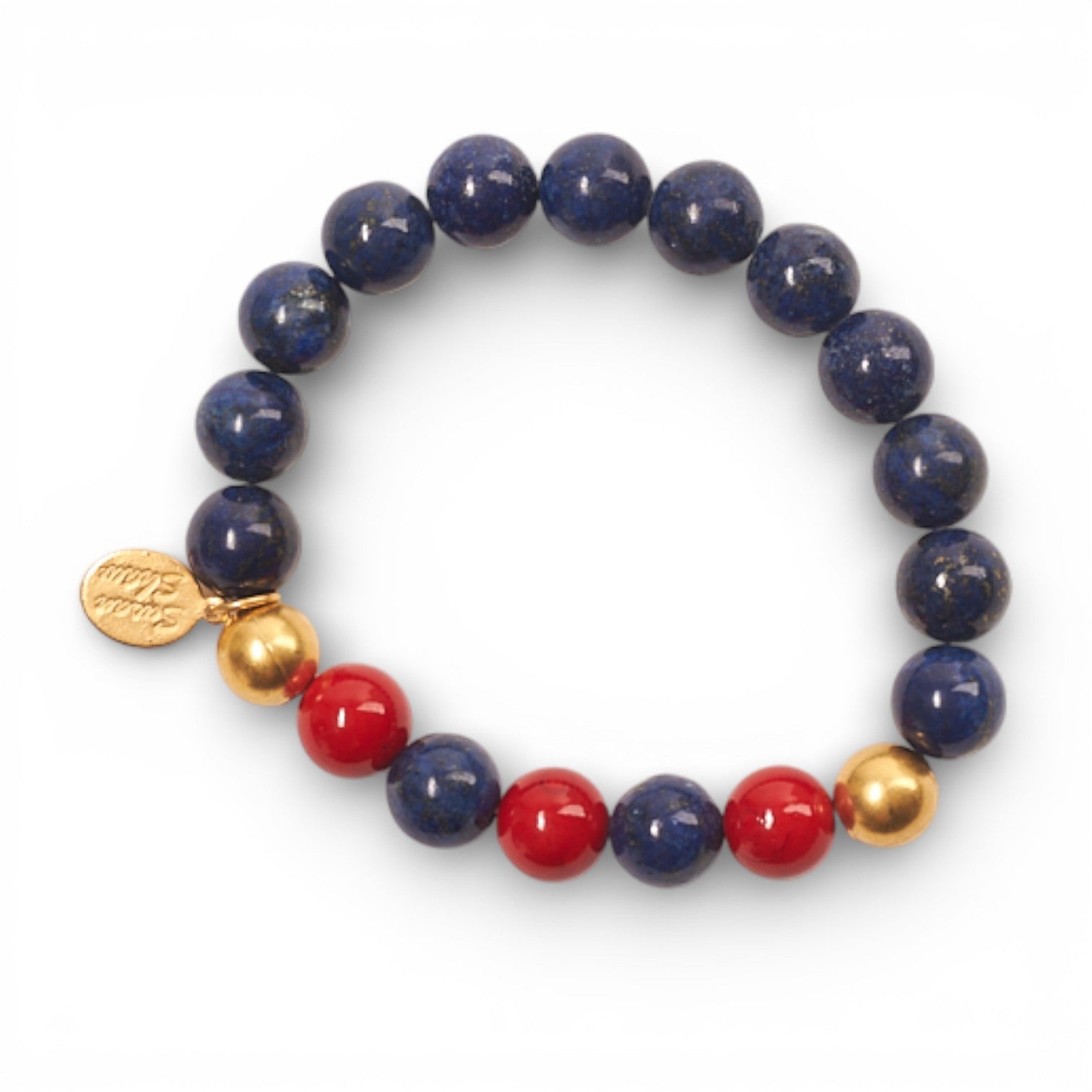 Handcrafted from blue lapis and red coral, our stretch bracelet is rich in color and designed for versatile, everyday wear. Made in the U.S.A. One size.