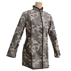 The perfect jacket for a festive event or night out, our black and silver reversible jacket adds effortless glamour to your outfit. Features a reversible floral jacquard pattern and a two-button closure. Travel friendly. 55% polyester, 45% viscose. Made in U.S.A. Sizes: S, M, L, XL.