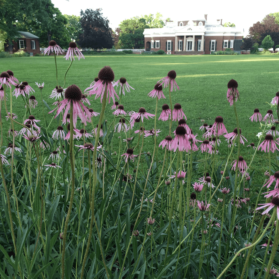 Narrow-leaved Coneflower, like its broad-leaved cousin, is native to the Midwestern United States from Minnesota to Texas. An 1805 shipment of plants sent to Jefferson by the Lewis & Clark Expedition included this species, called 'Mad Dog Plant'. The Native Indians prized it as a remedy for rattlesnake and mad dog bites. The Latin name, echinos, meaning hedgehog, refers to the bristly cone of disk florets in the center of the large composite flower. This Coneflower has many landscape benefits: the flowers attract butterflies, birds consume the seeds, and it is drought- and deer-tolerant.