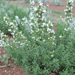 Native to the Mediterranean, Winter Savory was being grown in New England gardens during the seventeenth century. Thomas Jefferson's friend and neighbor, George Divers of Farmington, noted that he was able to supply Jefferson with the pot-herbs "Marjoram, Winter Savory and Thyme" in a letter written February 28, 1820. The leaves of Winter Savory can be used to season hardy foods such as bean dishes, organ meats, and wild game. An attractive plant, it can also serve as an evergreen edging in the herb garden or flower border. The fragrant foliage is not favored by deer.